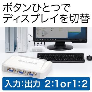 SANWA SUPPLYの2ポートVGAモニター切替器(製品番号4969887592410)は、2台のVGA信号入力を1台のモニターに切り替えることができるデバイスです。以下は、一般的な製品情報の概要です。