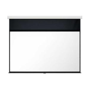キクチ科学の手動巻上式スクリーン「CS-120HDCW-W」は、壁や天井に取り付けて使用するタイプのスクリーンです。スプリング式のデザインにより、簡単に引き出したり巻き取ったりできるのが特徴です。このモデルは特にホワイトの表面を持ち、プロジェクターと組み合わせての使用に適しています。