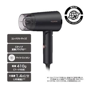 - マイナスイオン機能により、髪に潤いを与え、静電気を抑える効果があります。