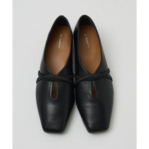 パンプス ストラップソフトレザーフラットパンプス