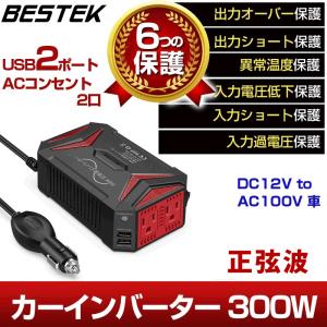 6950334947004 カーインバーター 正弦波 300W インバーター DC12V コンパクト 車載充電器 ACコンセント USB アウトドア MRZ3010HU BESTEK