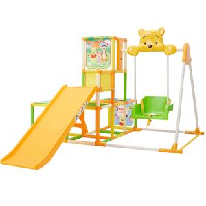 4969755043556 くまのプーさん おりたたみ ロングスロープキッズパークSP プラス ジャングルジム 室内 すべり台 ブランコ 鉄棒 折り畳み 滑り台 野中製作所
