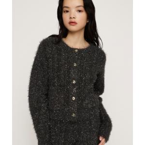 秋冬のワードローブに華やかさを添える、繊細なラメ糸を織り込んだシャイニーな質感が魅力の一着です。
