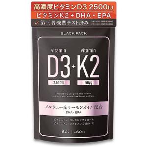 4595989051502 ビタミンD3 K2 サプリメント サプリ ビタミンd ビタミンd3 2500IU K2 DHA EPA オメガ3 飲みやすい小さめサイズ ブラックパック(1日1粒 60日分)