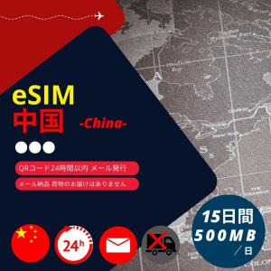 4571499381254 【中国eSIM】メールで納品完了(24時間以内・荷物発送無し) 15日間 データ通信専用 (1日あたり500M) CMCC正規品