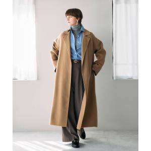 程よく厚みのある生地は保温性に優れ、真冬でも暖かくお召しいただけます。ゆったりとしたサイジングは厚手のニットも着込みやすく、共布のベルトでウエストマークすれば、女性らしいメリハリのある着こなしも楽しめます。