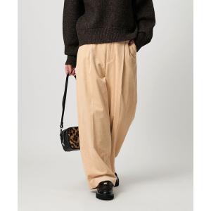 ウエスト周りはすっきりとデザインされているため、旬のタックインスタイルも綺麗に決まります。ボリューム感のあるニットから、きれいめのブラウスまで幅広いトップスと相性が良く、デイリーユースからオフィスシーンまでマルチに活躍。大人の余裕を感じさせる、リラックス感のある着こなしを叶える一着です。