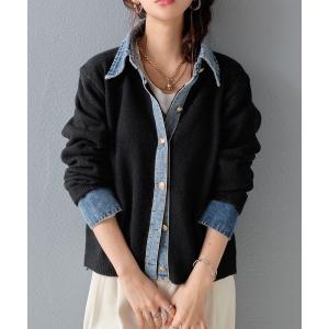 異素材の組み合わせが目を引く、デニムドッキングニットカーディガンのご紹介です。