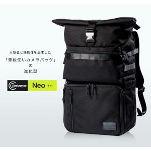 「Endurance Neo カメラリュック」は、大容量で一眼レフカメラや関連機材を安全に収納できる特別なデザインのバッグです。以下のような特長があります。