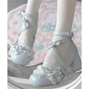 パンプス 9C92 レースリボン クロスストラップ パンプス