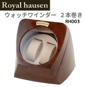 ロイヤルハウゼン(Royal Hausen)のウォッチワインダーは、腕時計の自動巻きを補助するデバイスです。このモデルは、2本の腕時計を同時に巻くことができるタイプで、木目調のデザインが特徴です。モデル番号はRH003で、時計を収納するためのケースも兼ね備えています。