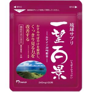 「琉球サプリ 一望百景」は、マイケアから提供されているサプリメントで、主に目の健康をサポートするために設計されています。この商品にはルテインが20mg含まれており、一般的にルテインは眼の網膜を保護し、視力を維持するために重要な成分とされています。パッケージ内容は30粒で、約1ヶ月分の使用が可能です。
